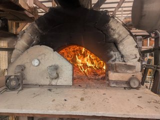 今年はガスコンベクションでは無く ピザ窯で焼く事に島した 先ずはピザ窯に火を入れる