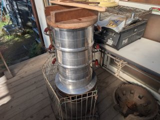 約1時間餅米を蒸して そろそろ蒸し上がり さぁ〜餅突き開始だよ〜