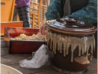 お米全体に菌が満遍なく着く様に混ぜ込みをして行きます